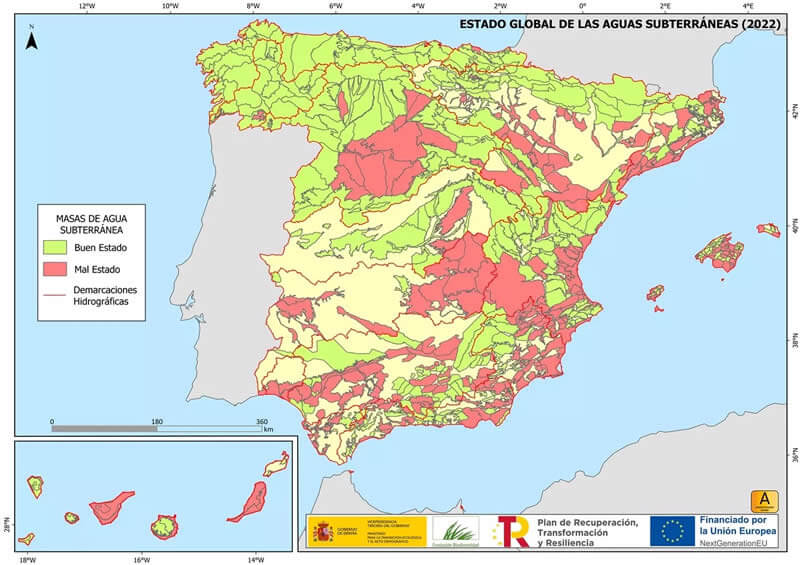Volgens gegevens van 2020 zijn de bijzonderste gebieden die bedreigd worden de meseta van La Mancha, het zuiden van Extremadura, de landbouwgebieden van Castilla y León en La Rioja en de Canarische archipel en de Balearen, samen met de vallei van de Ebro, een deel van de vallei van de Guadalquivir en het zuidelijk deel van de provincie Alicante.